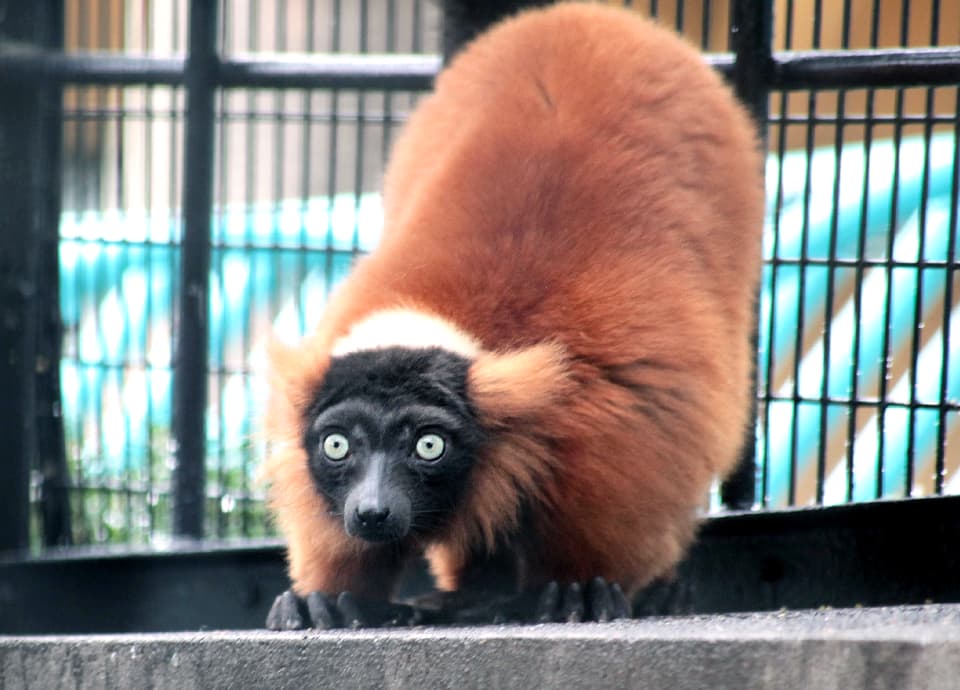 アカエリマキキツネザルはマダガスカルの固有種で、名前のように、全身が綺麗なオレンジ色をしている。 クロシロエリマキキツネザルに比べ、国内の動物園では見る機会が少ないが、敏捷な動きは共によく似ている。