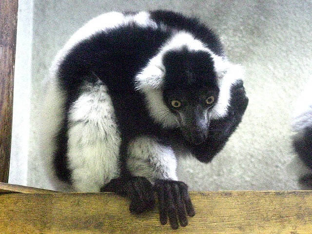 また、マダガスカル島北東部に分布しているアカエリマキキツネザルも、絶滅危惧種・CRとしてレッドリストに指定されている。 * 写真はいずれも本種・クロシロエリマキキツネザル。 キツネザル科の動物へ / このページの先頭へ |