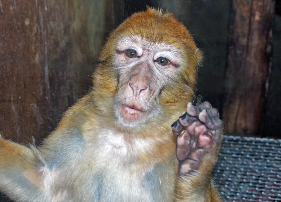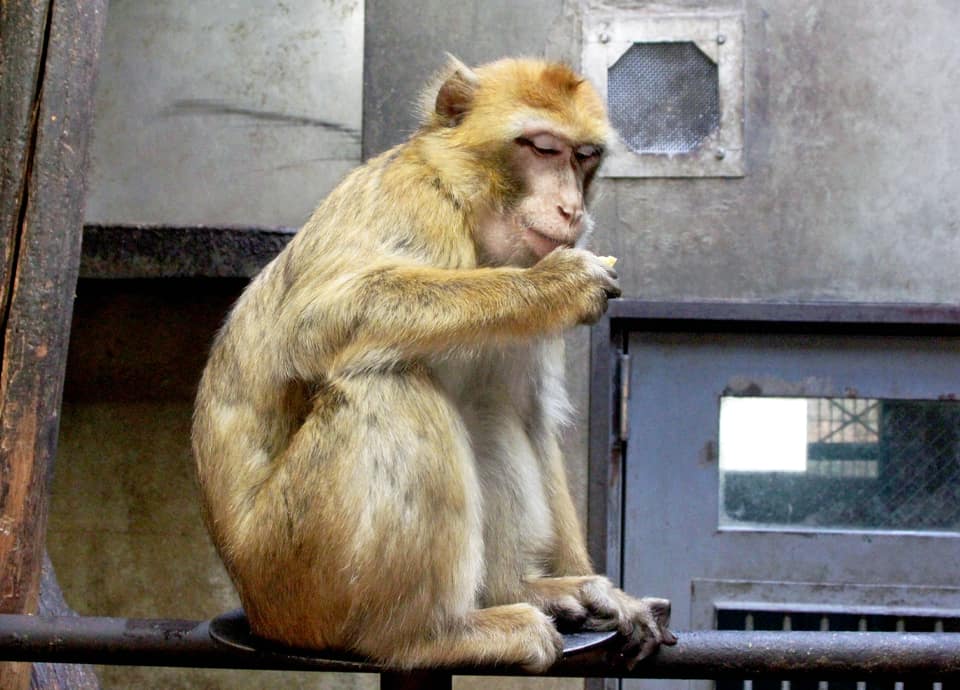 バーバリーマカクの分布域・生息環境 バーバリーマカクはアフリカ北西部のモロッコやアルジェリアなどに分布していて、多くはモロッコ側のアトラス山脈で見られるが、一部のバーバリーマカクは対岸のジブラルタルにも生息している。 ジブラルタルに生息しているものは、ヨーロッパで見られる唯一の野生ザルと言われているが、観光化してしまっている面もあり、半ば野生を失ってしまっていると言われている。 また、ジブラルタルのものは自然分布ではなく、7~8世紀頃にイスラム圏から導入されたものとも言われている。 バーバリーマカクは低地から山地に生息していて、標高2500m辺りのところでも見られる。 高山の崖や峡谷などで多く見られるが、低地の草原にも生息している。 バーバリーマカクの大きさ・特徴 バーバリーマカクは平均するとニホンザルほどの大きさで、体つきはがっしりとしている。 体の大きさには幅があるが、雄は体長55~65cm、体重は10~16kg程であるのに対して、雌は体長45~55cm、体重7~11kg程で、体は雄の方が大きい。 四肢には5本の指があり、爪はすべて平爪をしている。 親指は他の4本と対向していて、物をつかむことができる。 また、ニホンザルのように、頬には一時のあいだ食べ物を蓄えておくことができる頬袋をもっている。 その為、食べ物を効率的に集めたのち、外敵などがいない安全な場所でゆっくりと食べることができる。 尾は痕跡程度で、あっても極めて短いのが特徴になっている。 この為、ゴリラやチンパンジーのようにエイプ(尾がないサル)として、バーバリーエイプと呼ばれることもある。 毛はやや長くて厚く、毛色は黄色っぽい灰色や灰色を帯びたような茶色、褐色などで、腹面は白っぽい色をしている。 バーバリーマカクの生態・生活 バーバリーマカクは比較的標高の高い渓谷や断崖などの環境を好み、杉や樫の木が多い森林地帯に生息している。 標高1500~2500m程のところに多く見られるが、標高の低い雑木林や岩のある低木林、低地の草原などでも見られる。 社会的な群れをつくって生活していて、平均した群れの数は20~25頭程だが、時には60頭程の群れになることもあり、それ以上の大きな群れをつくることもある。 また、バーバリーマカクの雌は、出生した群れに留まることから、群れは母系家族であるほか、雌雄共に社会的な階級をもっている。 特に雌の階級ははっきりとしていて、群れの中の序列は、優位な雌の血筋によって決定される。 優位な雌の子どもは劣位の雌の子どもよりも上位で、新しく生まれた雌は、姉となる雌よりも優位にあると言われている。 一方、雄にも優劣が見られるが、その階層は緩やかなものと考えられている。 バーバリーマカクは日中に活動し、昼の間は多くの時間を採餌や移動に費やし、夜は数頭の同姓が集まって樹上や洞窟などで休む。 木登りも巧みで、採餌は地上と樹上の両方で行われ、主に果実や花、木の葉や種子、芽、樹皮、球根などの植物質のものを食べる。 また、バッタなどの昆虫類やミミズ、クモやカエル、オタマジャクシなど、バーバリーマカクは季節によって様々なものを食べる。 行動範囲は3~9平方km程度、平均すると7平方Km程度と言われているが、行動範囲はしばしば他の群れと重複している。 コミュニケーションは様々な鳴き声によって行われるが、隣接する他の群れの鳴き声も聞き分けることができ、群れによって鳴き声が違っているとも言われている。 外敵は大型のワシなどの猛禽類で、危険を感じ取ると警戒音を発して仲間に知らせ、高い樹幹部に逃げて身を隠す。 幼いものなどはジャッカルやアカキツネなどに襲われることもあるが、一番の外敵は人とも言われていて、森林伐採などの開発などが脅威になっている。 バーバリーマカクの繁殖・寿命 バーバリーマカクの繁殖期は主に11~12月頃で、繁殖は一夫多妻で行われ、より支配的な雄は交尾の機会が多い。 雌の妊娠期間は概ね160~170日程で、1産1~2子、普通は1子を出産する。 出産は4~6月頃に多く見られ、生まれたばかりの子どもの体重は400~500g程で、7~12ヵ月程の授乳期間がある。 雌雄共に4年を過ぎた頃には性成熟し、雌は出生した群れに残るが、雄はその頃には群れから離れ、別の群れに加わるまで、若い雄だけの群れに入っていく。 バーバリーマカクの飼育下での寿命は25年程度、野生では17~22年程度と考えられていて、雌の方が長生きするとも言われている。 ところで、バーバリーマカクは雌も複数の雄と交尾し、群れの中のほぼ全ての雄と交尾すると言われている。 この行為によって父親の特定が困難になり、すべての雄が子育てに参加することを促していると考えられている。 実際、バーバリーマカクは雄も育児に参加することが観察されている。 群れの仲間が共同で育児を行うことも観察されていて、雌たちだけでなく、若い雄も参加し、外敵などからも子どもを守るようにしている。 また、雄同士が争うような場合、劣勢の