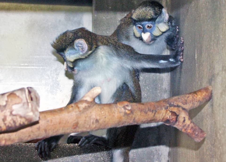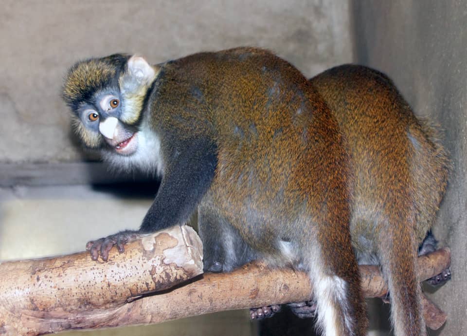 シュミットグエノンの分布域・生息環境 シュミットグエノンはアンゴラ北部や中央アフリカ共和国、コンゴ民主共和国やウガンダ、ケニア南西部、ルワンダ、スーダン南部、タンザニア西部、ザンビア北部など、アフリカに広く分布しているアカオザルの亜種で、シュミットグエノンはウガンダやケニア、ルワンダやコンゴ民主共和国などに分布している。 低地から山地の熱帯雨林などに生息しているが、湿地林や二次林、河川沿いの森林地帯などにも生息している。 シュミットグエノンの大きさ・特徴 アカオザルは体長35~65cm程度、体重3~4.5kg程度で、体は雄の方がやや大きいが、雌雄共に体の大きさの違いを除けばよく似ている。 シュミットグエノンもこの範囲の大きさで、雄の平均した体長は46cm程度、平均体重は4kg程で、雌では平均した体長が38cm程度、平均体重は3kg程になる。 体毛は黄褐色のような感じで、腹側は淡色で白っぽい色をしている。 また、シュミットグエノンの目の周りは青色で、頬には白っぽい毛が房毛のように伸びているのが特徴になっている。 この毛は耳の近くまで広がっているが、鼻にもショウハナジログエノンのような白いスポットがあり、このスポットは正面から見るとハート形をしていて、シュミットグエノンはきわめて特徴的な顔をしている。 尾は体長よりも長く、尾の色は先に行くにしたがって明るい茶色になっている。 「アカオザル」の名前は、この尾の色から付けられていて、英名の「Red-tailed monkey」も同じことから付けれている。 また、シュミットグエノンは、ニホンザルのように食べ物を一時の間保存しておくことができる頬袋をもっていて、この頬袋は胃とほぼ同じ量を蓄えてことができると言われている。 シュミットグエノンの生態・生活 シュミットグエノンは低地から山地の熱帯雨林や湿地林、二次林などに生息していて、群れをつくって生活している。 群れの数は10~15頭ほどで、1頭の雄と複数の雌、その子どもたちから構成されている。 多ければ25~30頭程の群れをつくることもあるが、雄だけの群れも見られる。 シュミットグエノンは昼間に活動するが、日中は休んでいることが多く、早朝や夕方になると活発に活動する。 また、ほとんどの時間を樹上で過ごし、多くの時間を採餌に費やしているが、体長よりも長い尾は、樹上でのバランスをとるのに役立っている。 雑食性で、主に果物や種子、木の葉や花などを食べるが、樹脂や昆虫類なども食べる。 ほかのアカオザルと同様、シュミットグエノンも縄張りを主張し、他の群れに対しては争う習性があるが、マンガベーやコロブスの仲間など、他の霊長類とは一緒に採餌する様子が観察されている。 外敵は大型のヘビや猛禽類、ヒョウなどの他、チンパンジーに襲われることもある。 シュミットグエノンの繁殖・寿命 繁殖は11~2月頃に多く見られるが、シュミットグエノンは年間を通して繁殖する。 繁殖は一夫多妻で行われ、雌の妊娠期間は5~6ヶ月程と考えられていて、ふつうは1産1子を出産する。 生まれたばかりの子どもの体重は400g程度で、灰色の毛色をしている。 尾は茶色で、鼻の斑ははっきりとしているが、頬の房毛は生えていない。 育児は主に雌によって行われるが、群れの中の雌が手伝うこともあり、雄は6年、雌は4~5年程で性成熟する。 雌は成熟した後も出生した群れに残るが、雄はその頃には群れを離れていく。 飼育下でのシュミットグエノンの寿命は、他のオナガザルの仲間と同様、30年程度と考えられている。 一方、野生下での寿命は分かっていないが、飼育下よりは短く、10年程度とも言われている。 また、自然下では、アカオザルとアオザル(Cercopithecus mitis)は交雑し、繁殖力のある子どもを産むことが報告されている。 シュミットグエノンの保護状況・その他 シュミットグエノンを含むアカオザルは、現在のところ絶滅の恐れはないとされているが、開発などによって生息地が減少していて、それに伴い生息数も減少している。 また、生息地が開発されて耕作地に置き換わった地域では、耕作地に現れ、トウモロコシやバナナ、キビやカボチャなどの作物も食べることから、害獣として駆除されることもある。 尚、アカオザルには次の亜種が確認されている。 Cercopithecus ascanius ascanius C. a. atrinasus C. a. katangae C. a. schmidti C. a. whitesidei |