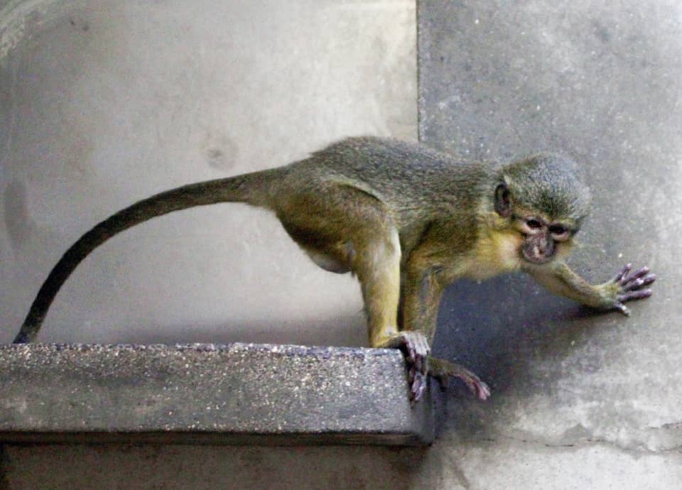タラポアンの分布域・生息環境 タラポアンの仲間はカメルーンやガボン、赤道ギニア、コンゴ共和国西部、コンゴ民主共和国西南部、アンゴラ北部などの西アフリカに分布している。 アンゴラタラポアンはミナミタラポアンとも呼ばれていて、コンゴ民主共和国南西部とアンゴラ北部などのコンゴ川の南に分布している。 ガボンタラポアンはキタタラポアンとも呼ばれていて、カメルーン南部や赤道ギニア、ガボン西部 、コンゴ共和国西部などに分布している。 いずれも森林地帯に生息しているが、湿地や河川沿いなど、水辺近くを好む傾向がある。 また、タラポアンは食べ物を容易に得ることができる耕作地周辺などにも姿を見せ、村や集落などに現れることもある。 タラポアンの大きさ・特徴 タラポアンの仲間はアフリカで最も小さいサルの一種で、旧世界ザルの中でも最小の種と言われている。 体はリスザルよりは大きいが、アンゴラタラポアンの体長は32~45cm、体重は0.8~1.9kg程しかない。 ガボンタラポアンでは、体長23~40cm、体重は0.8~1.7kg程で、アンゴラタラポアンよりは体が小さい。 また、どちらの種も体は雄の方が少し大きいが、雌雄ともに頭部は丸くて大きく、目も大きい。 毛色は緑がかった黄色や緑色を帯びたような灰色、黒色などで、腹面は白色や灰白色をしている。 尾は体長よりも長く、上面は灰色や茶色がかった黒色で、下面は黄色っぽい灰色をしている。 また、タラポアンはニホンザルと同じように頬袋をもっていて、食べ物を一時の間蓄えておくことができる。 タラポアンの生態・生活 タラポアンの仲間は主に低地の森林地帯に生息しているが、湿地林や二次林などを含むさまざまな森林に適応している。 しかし、川や沼などの水辺に多く、水源から遠く離れたところでは見られない。 また、海岸に近いマングローブ林にも多く見られることから、マングローブモンキーと呼ばれることもある。 昼間に活動し、60~80頭程の大きな群れで生活しているが、食べ物を容易に入手できる耕作地周辺などでは、群れが大きくなる傾向があり、100~120頭の群れをつくることもある。 群れの中では雄よりも雌の数の方が多いが、これらの群れはサブグループから構成されている。 雄だけのグループと雌とその子どもたちのグループ、また若いものたちだけの群れも見られると言われている。 採餌に出かける時はいつくかのグループに分かれるが、その時は同性のものが集まり、子どもは雌のグループと一緒に採餌する。 夜には再び集まって、水辺近くの樹上で休み、母親と子どもは一緒に休んでいる。 樹上にいることが多いが、タラポアンは地上で採餌することも多く、主に果実や木の葉、種子などのほか、昆虫や鳥の卵、トカゲなどを食べる。 また、タラポアンは泳ぎもうまく、水生植物も食べるほか、耕作地の近くに生息しているものは、時に農作物を荒らすこともある。 外敵はヒョウや大型のヘビなどで、危険を感じると水に飛び込み、泳いで逃げることもある。 夜間は川に張り出した木の枝などで休むのも、外敵が近づいても、すぐに川の中に逃げ込むことができるからと言われている。 この他、タラポアンは比較的小さな行動範囲をもっているが、他のグエノンと異なり、縄張りはもっていないと言われている。 タラポアンの繁殖・寿命 タラポアンの繁殖期は5~9月頃と言われていて、この時期には雌雄ともに異性のグループに加わり、雌も複数の雄と交尾する。 雌は妊娠期間158~166日程で、ふつうは1産1子を出産する。 生まれたばかりの子どもの体重は180~200gほどもあり、母親に比べるとかなり大きい。 育児は主に母親によって行われるが、タラポアンは他の雌も育児に関わり、ほかの子どもに授乳することも観察されている。 成長は早く、6週間程の授乳期間の後、3ヵ月程で独立し、雄はその後半年ほどで他の若い雄のグループに加わるようになる。 雌は4~5年程で性成熟するが、雄は雌よりも1~2程遅れて性成熟する。 タラポアンの詳しい寿命は分かっていないが、飼育下では28年の記録が残っている。 但し、種や生まれた日時などが不明で、正確な年齢は分かっていない。 野生下での寿命も分かっていないが、一般に飼育下の寿命よりも短くなる。 タラポアンの保護状況・その他 タラポアンの仲間は、近年の開発などにより生息地が減少していて、それに伴い個体数も減少している。 現在、アンゴラタラポアンは国際自然保護連合(IUCN)で絶滅危惧種(VU)として指定されていて、アンゴラではほとんど見られなくなっている。 ガボンタラポアンも生息数が減少していて、準絶滅危惧種(NT)に指定されているが、森林の伐採や開発は止まず、食用のための狩猟も行われていて、個体数の減少は、いずれの種も考えている以上に深刻なものになっていると言われている。 |