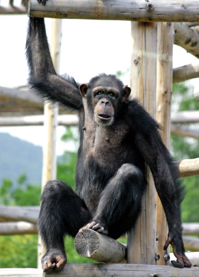 | このページでは、本文ページでは掲載できなかったチンパンジーの写真を紹介しています。 チンパンジーは動物園などでも人気のある動物で、知能も高く、簡単な道具を使うこともできます。 遠くから見ていると小柄に見えますが、チンパンジーは立ち上がると1.3~1.7m程にもなり、人の身長とほぼ同じくらいの高さがあます。 また、チンパンジーの分布域や生態、繁殖や寿命などの詳細については、本文のプロフィールで紹介していますが、本文ページにも数枚の写真を掲載しています。 |