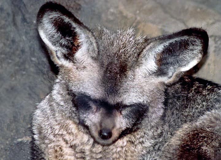 | オオミミギツネは、名前のように12~13cm程もある大きな耳が特徴で、アフリカの東部や南部に広く分布している。 家族単位で生活しているが、イヌ科の中では珍しく、主にシロアリや昆虫類を食べる。