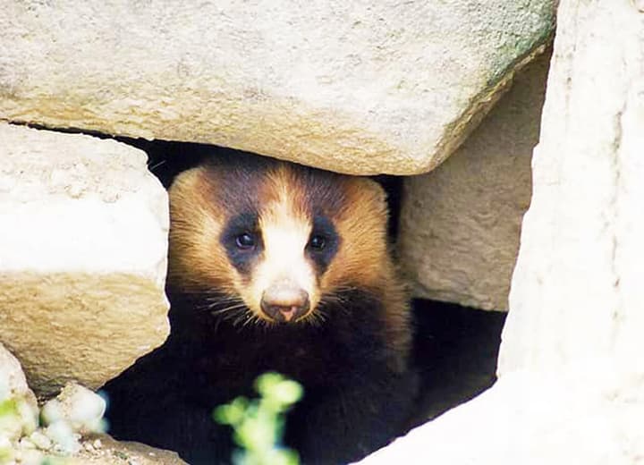 アナグマの分布域・生息環境 アナグマ属(アナグマ)は、ヨーロッパからアジアにかけての寒帯から温帯域に広く分布していて、以前は単一種とされていたが、現在は次の四つの独立種としてとらえられていて、それぞれ分布域が異なっている。 Meles anakuma (Japanese badger) 日本の固有種(ニホンアナグマ)で、本州や四国、九州に分布している Meles leucurus (Asian badger、Sand badger, ) アジアアナグマ、或いはスナアナグマと呼ばれていて、カザフスタンやキルギスタン、モンゴルや中国、朝鮮半島やロシアに分布 Meles meles (European badger、 Eurasian badger) ヨーロッパアナグマ、またはユーラシアアナグマと呼ばれていて、ヨーロッパから西アジア、中央アジアなどに分布 Meles canescens ( Caucasian badger、Southwest Asian badger ) コーカサスアナグマと呼ばれ、地中海のいくつかの島やトルクメニスタンやキルギスタン、イランやアフガニスタンなどの西アジアに分布している いずれも低地から山地の森林地帯や雑木林、草原やステップ、藪地などに生息していて、分布域が広い為、様々な環境で見られる。 アナグマの大きさ・特徴 アナグマは種によって大きさや毛色などがやや異なっていて、ニホンアナグマはアナグマの中では小型で、体長40~60cm、体重4~8kg程で、毛色はふつう茶色や赤褐色をしている。 アジアアナグマはヨーロッパアナグマよりは小型で、体長50~70cm、体重4~9kg程だが、大きい雄は体重13kg程に成長することもある。 5亜種が知られていて、毛色は灰褐色や赤褐色など、変化がある。 ヨーロッパアナグマは平均した体長が60~90cm程で、7~13kg程の体重があり、がっしりとした体格をしている。 4亜種が知られていて、秋には脂肪を蓄え、体重17kg程になるものも見られる。 コーカサスアナグマはヨーロッパアナグマよりもやや小型で、4亜種があると言われている。 体の大きさは、それぞれの種の中でもかなり変化があるが、平均した大きさはヨーロッパのものがもっとも大きく、国内に分布する二ホンアナグマはもっとも小さい。 しかし、アナグマはいずれも尾は短くて、四肢も太くて短い。 全体に幅広く頑丈な体つきで、ずんぐりとした印象を受ける。 また、四肢にはそれぞれに5本の指をもっているが、前足の爪はとても長くて、離れていてもよく目立つ。 毛色にも変化があるが、ふつうは背側が灰褐色や褐色などで、腹部と四肢は黒っぽく、口先から目、耳にかけて暗い縞があり、その間は白っぽくなっている。 アナグマは一見してタヌキに似ているが、顔や体の様子が違っている。 また、タヌキはイヌ科に属しているが、アナグマはテンやカワウソなど同じイタチ科に属していて、盲腸はない。 ハナグマにも似た感じがするが、ハナグマはアライグマ科に属している。 アナグマの生態・生活 アナグマの仲間は、低地から山地の森林や雑木林、草原や藪地などに生息しているが、耕作地周辺などにも生息している。 クランと呼ばれる5~6頭程の家族群で生活しているが、時には20頭を超える大きな群れも見られる。 しかし、単独で生活しているものも見らるほか、二ホンアナグマは群れをつくることなく、普段は単独で生活している。 アナグマは主として夜行性の動物で、昼間は巣穴に潜んでいることが多い。 巣穴は水はけのよい斜面などを利用して、地下2~3mのところにつくられる。 内部は乾燥した木の葉などで清潔に保たれていて、大きいものでは長さが50mを超え、時には100m近くになるとも言われている。 入り口も複数設けられていて、幾世代にもわたる多数の集団で生活している。 この他にも単独でやつがいで生活するものの巣穴もあり、これらは家族で使うものよりは小さくて、ふつうは入り口もひとつだけ設けている。 また、アナグマが使わなくなった巣穴をキツネなどが利用することもある。 アナグマは主にミミズや昆虫類などを食べるが、カエルやトカゲ、ヘビなどのほか、モグラやウサギなどの小動物や鳥類なも食べる。 また、雑食性で、果実などの植物食も食べ、果物が豊富にある時期はその割合も多くなり、時にトウモロコシやライ麦畑などを荒らすこともある。 寒い地方に生息するアナグマは、クマのように冬に穴ごもりをし、秋には脂肪を蓄え、大きな雄では30kg程にもなる個体もいると言われている。 暖かい地方のものは冬でも活動するが、寒い時には巣穴に籠って寝ていることが多い。 行動範囲は地域環境や食糧事情などによって大きく変化するが、平均すると1~3平方km程度と言われている。 行動範囲は縄張りにも結び付いているが、アナグマは縄張り意識が強く、肛門腺や尾部下腺からの分泌液、尿などを樹木などにつけて縄張りを主張する。 分泌液を相手の体に擦り付けたりする習性もあるが、これは互いの識別やコミュニケーションの為と考えられている。 また、単独で生活している雄の行動範囲の一部は、しばしば複数の雌の行動範囲の一部と重なっている。 外敵はオオカミなどで、子どもはアカギツ