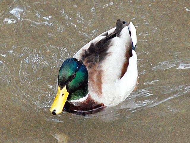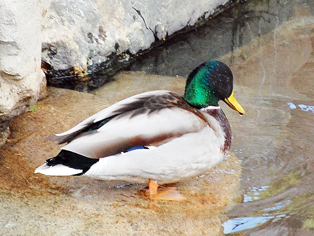 | マガモは北半球の冷帯域から温帯域にかけて広く分布している大型のカモで、カモ類の中でも最も生息数が多く、生息域も広い。 北方で繁殖するものは冬期には南に渡り、湖沼や河川、海岸などで群れで生活しているが、冬には国内各地でも普通に見られる。 マガモの雄は首から頭部が光沢のある緑色で、くちばしは黄色をしていて美しい。 また、首には白い輪があり、足はオレンジ色をしている。 雌は淡褐色と暗褐色のまだらで、くちばしはオレンジに黒が混ざっている。 泳ぎもうまく、川面などを泳いでいるのをよく見かけるが、マガモが頭を水に突っ込んだり、逆さまになって餌を探しているようなことはあっても、マガモが水中に潜ることは殆どない。 比較的人に慣れやすく、古くから大切な家禽とされてきたアヒルはマガモを原種としたもので、アイガモ(別名ナキアヒル)はアヒルとマガモの交配種である。 また、マガモはカルガモなどと同じ淡水性のカモで、主に穀物や水草の葉や茎など、植物質のものを多く食べる。 魚やカエルなどの両生類なども食べるが、クロガモのような海鴨とは違って貝類などを主食とすることはない。 カモ類はしばしば狩猟の対象とされるが、マガモの肉はカモ類の中でも良質とされている。 繁殖期は4~8月で、水辺に近い草地に浅い皿状の巣をつくる。 人に馴れやすいことから都市部にある池や河川などでも見かけることがあるが、時に廃屋や街路樹などの洞に巣をつくることもある。 平均して11個ほどの卵を産み、抱卵期間は28日前後。 また、マガモは他のカモ類と同じで、抱卵は雌だけが行う。 飼育下でのマガモの寿命は10~15年、野生下では5~10年と言われている。 しかし、足環による記録では26年を超えることが観察されているので、実際の生得寿命はかなり長いものだろう。 |