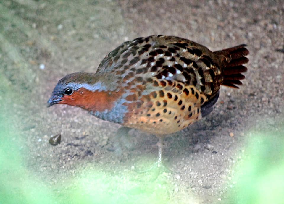 | コジュケイは小型のキジで、国内では移入定着している。 本州より南に生息しているが、警戒心が強く、姿を見せることは少ない。