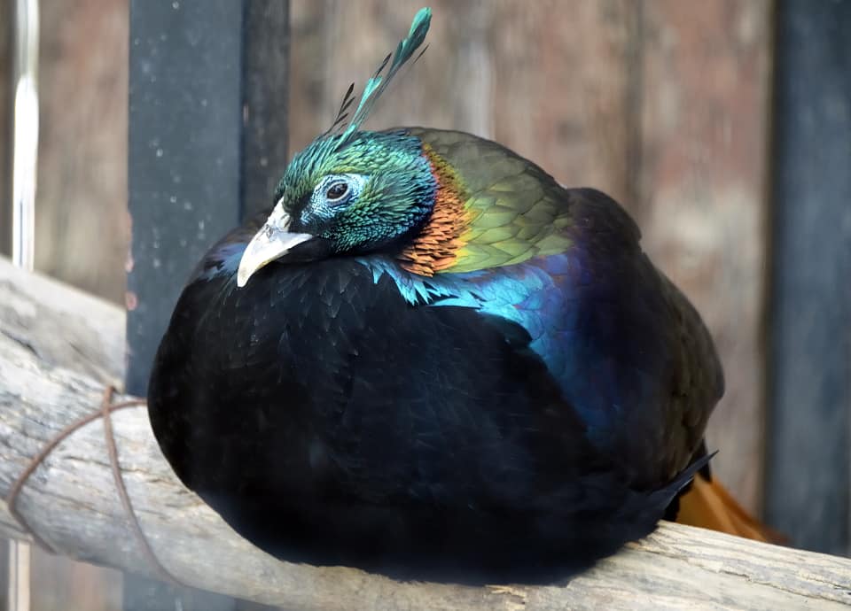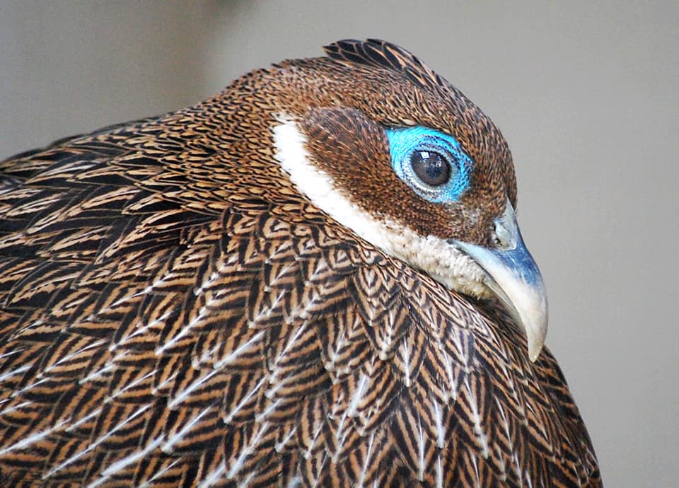 | ニジキジはヒマラヤ山系に分布している大型のキジで、体つきは他のキジ科の鳥に比べてがっしりとした感じがする。 雄では、頭部が金属光沢のある鮮やかな水色をしていて、頭頂にも同色の冠羽が見られる。