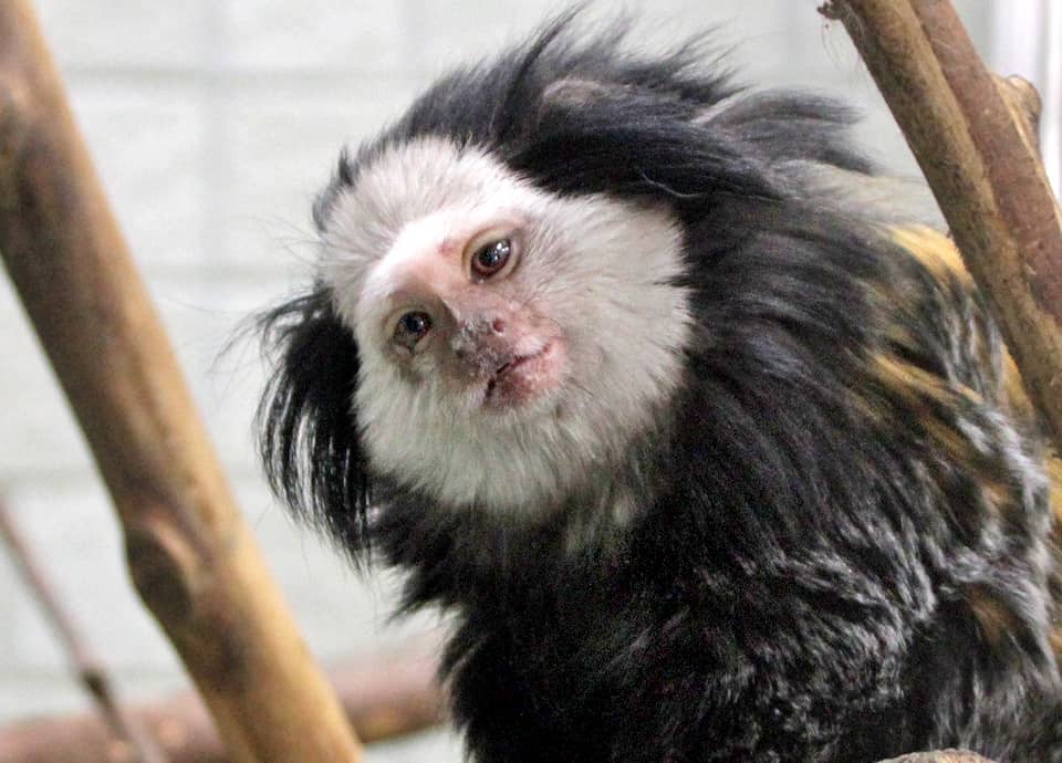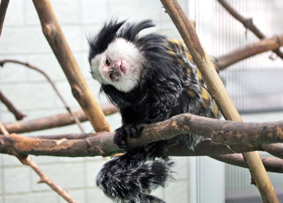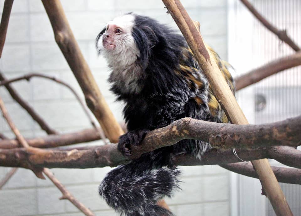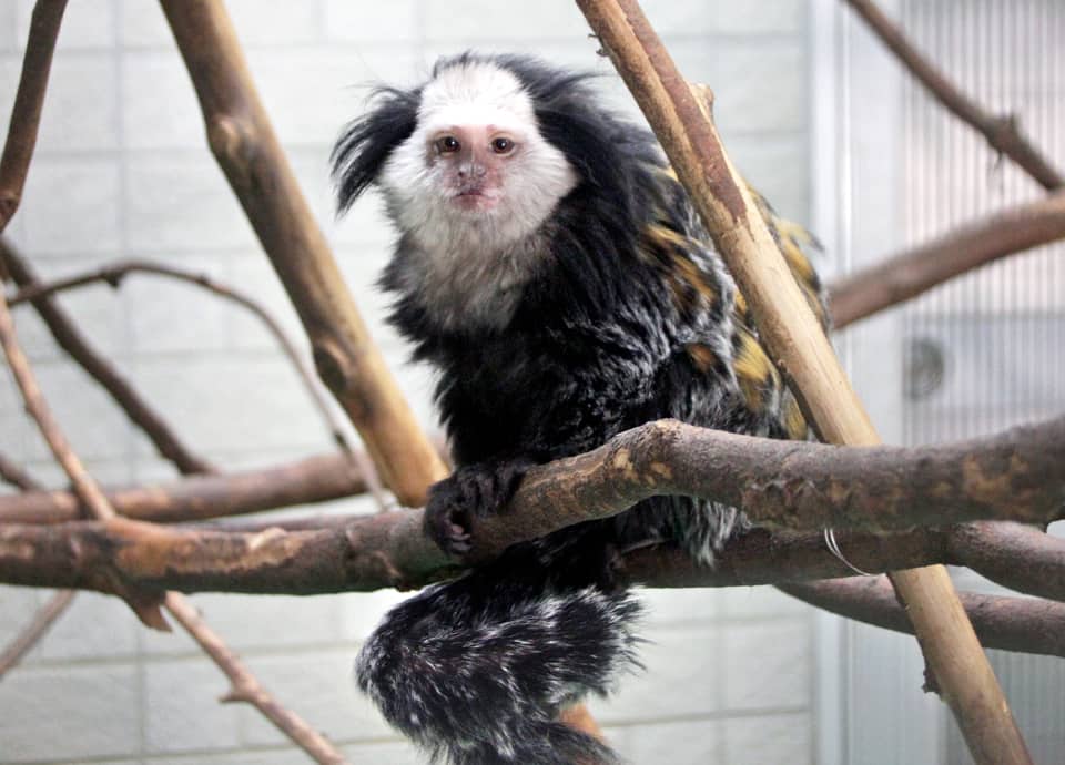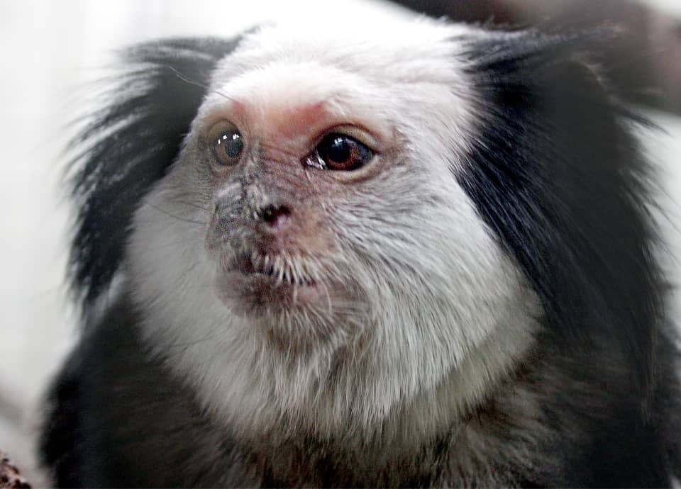 | シロガオマーモセットは小型の霊長類で、名前のように、顔の周りが白い毛で囲まれているのが特徴になっている。 森林内で家族単位で生活していて、ほとんど樹上で生活している。