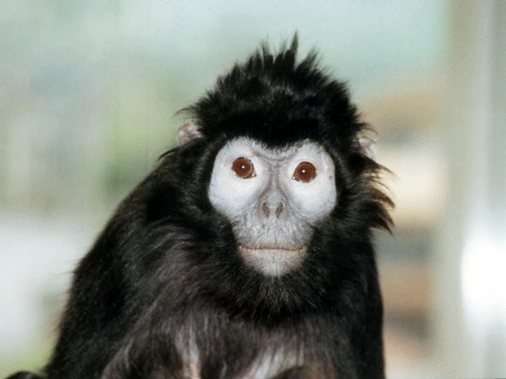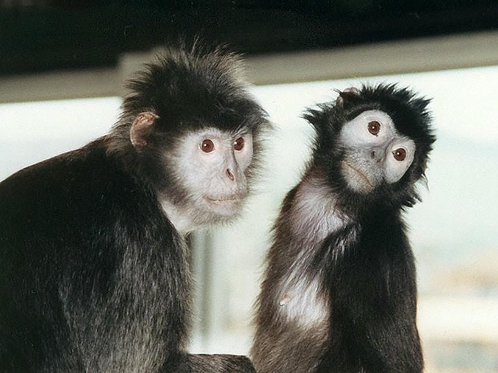 シルバールトンの分布域・生息環境 シルバールトンはインドネシアのジャワ島やスマトラ島、ボルネオ島、その近隣の島嶼部などに分布している。 さまざまな森林地帯に生息しているが、農園などの耕作地周辺にも生息している。 シルバールトンの大きさ・特徴 シルバールトンは雄の体重が7kg程度、雌は6kg程度で、体は雄の方がやや大きい。 雌雄ともに尾は体長よりもやや長いが、物に巻き付けたりすることはできない。 毛色は茶色や灰色、茶色がかった灰色、黒色などと変化があるが、これらの色に関係なく灰白色の毛が混ざっていて、全体に銀灰色の印象を受けることから名前が付けられている。 顔は白っぽく、頭頂部には冠毛が見られ、頬の毛はやや長くなっている。 また、成獣の毛色はくすんだような銀灰色に見えるが、生まれたばかりの子どもは鮮やかな金色やオレンジ色をしている。 シルバールトンの生態・生活 シルバールトンは、主に内陸の深い森林地帯などに生息しているが、マングローブのある湿地帯や海岸沿いの林など、地域によって多少異なっていて、竹林や農園などにも姿を見せる。 1頭の雄と複数の雌、それに子どもを含む10~20頭の群れで生活しているが、多ければ40頭ほどの群れもつくることもある。 また、雄だけの群れも見られ、単独で生活している雄も見られる。 昼間に活動するが、早朝と夕暮れ時には活発に活動する。 樹上性が強く、地上に降りることは滅多になく、樹間を移動しながら木の葉や果実などを食べている。 尾は体長よりも長く、樹上でバランスをとるのに役立っていて、樹間を敏捷に移動することができる。 シルバールトンはダスキールトンなどと同じリーフイーター(木の葉を主食とするサル)と呼ばれるサルの仲間で、別名・シルバーリーフモンキーと呼ばれることもある。 食べ物のほとんどは木の葉類が占めているが、果実や花、種子なども少しは食べ、食糧事情によっては樹皮なども食べる。 行動範囲は季節や食糧事情などによって幅があるが、平均すると0.2~0.43平方km程度と言われていて、毎日この中を移動して採餌している。 行動範囲は縄張りとも結びついているが、行動範囲は群れ同士で重なっていることもあり、その様な場合、雄は威嚇のような声を上げ、縄張りを主張する。 外敵はヒョウやウンピョウ、スマトラトラやドール、大型のヘビなどだが、子どもはビントロングなどに襲われることもあると言われていて、夜間は1本の樹木の高いところに群れが集まって休む。 シルバールトンの繁殖・寿命 シルバールトンには決まった繁殖期はないが、出産は食べ物が豊富な12~5月頃に多く見られる。 繁殖は一夫多妻で行われ、雌は妊娠期間6~7ヵ月程で、ふつうは1産1子を出産する。 生まれたばかりの子どもは体長20cm、体重400g程度で、目は既に開いている。 生後すぐに母親にしがみつくだけの握力があり、毛色は鮮やかな金色やオレンジ色のようなをしている。 育児は群れの中の他の雌によっても行われ、生後3ヵ月頃から親と同じような銀白色になりはじめる。 子どもは1年ほどの授乳期間があるが、完全に離乳するには1年半程はかかる。 雌雄共に4~5年で性成熟し、雌はそのまま出生した群れに残るが、雄は性成熟する頃には群れを離れていく。 飼育下での寿命は20~25年と言われているが、30年を超えたものも報告されている。 一方、野生下では20年ほどの寿命があると考えられているが、詳しくは分かっていない。 また、コロブスの仲間は雌が求愛行動を起こすことが知られているが、シルバールトンの雌もプレゼンテーションと呼ばれる求愛行動をとることが観察されている。 シルバールトンの保護状況・その他 シルバールトンは、近年の森林開発や樹木の伐採などによって生息地が減少していて、それに伴い個体数も減少している。 最近までは、は国際自然保護連合(IUCN)の保存状況評価によって、準絶滅危惧種(NT)としてレッドリストに指定されていたが、現在は絶滅危惧種(VU)に指定される状況になってしまっている。 尚、シルバールトンの亜種について研究の途中だが、次の2種が指摘されている。 Trachypithecus cristatus cristatus ボルネオ島やスマトラ島などに広く分布する基亜種 T. c. vigilans インドネシアのナツナ諸島だけに分布 また、亜種であったT. c. selangorensis(Malay Peninsula・マレーシアに分布)は、現在は別種・T. selangorensisとされている。 |