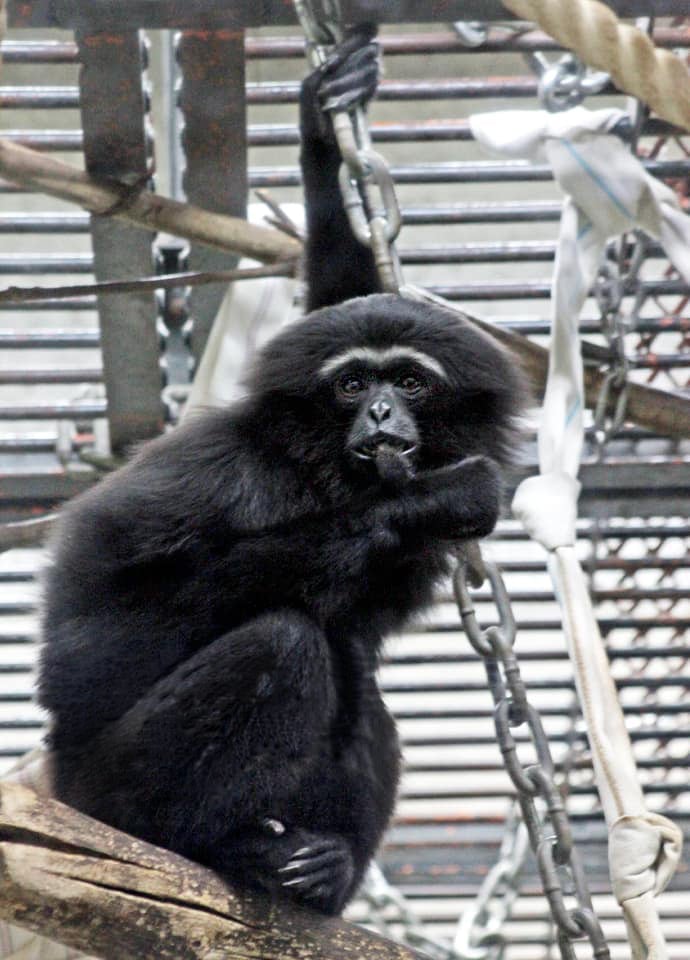 | アジルテナガザルはインドネシアやマレー半島など分布しているテナガザルで、ほとんど樹上生活をしている。 毛色には変化があるが、雌雄共に眉は白い色をしているのが特徴になっている。