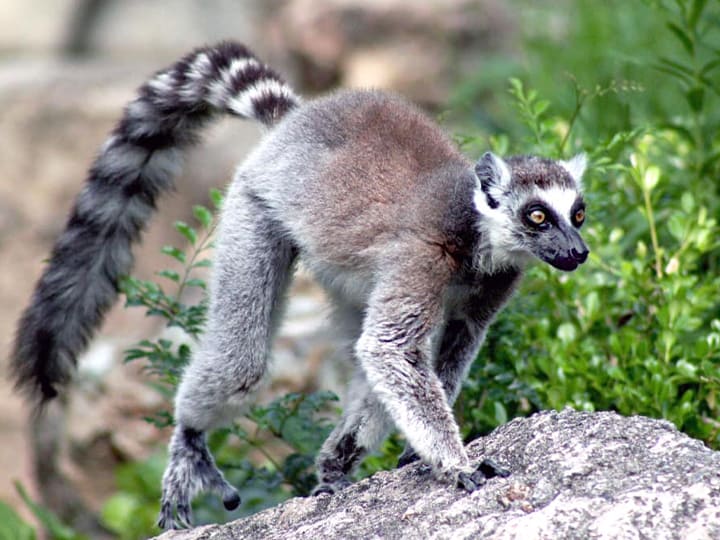 | キツネザルの仲間は、マダガスカル島とその周辺の島にしか分布していないが、鼻面が長く、一見してキツネに似た感じがすることから、そのような名前がつけられている。 ワオキツネザルも同様の顔つきをしているが、尾は白と黒の輪模様になっているのが特徴で、名前の由来にもなっている。