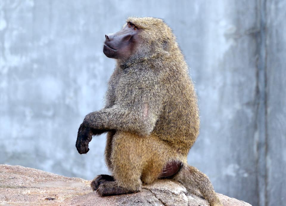 | アヌビスヒヒはヒヒ類の中でも最も体が大きい種のひとつで、がっしりとした体つきをしている。 アフリカ中央部に分布していて、サバンナ地帯を移動しながら生活している。