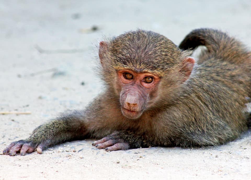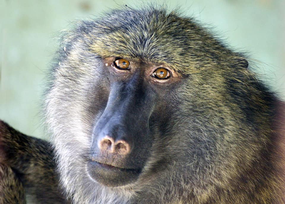 アヌビスヒヒの分布域・生息環境 アヌビスヒヒは別名をドグエラヒヒとも呼ばれ、マリからブルキナファソ、ニジェールを経て、スーダンや中央アフリカ、エチオピア、ケニア、タンザニアなど、アフリカ大陸の中央部に帯のように分布している。 サバンナヒヒと呼ばれるヒヒの仲間で、乾燥した草原地帯や森林、半砂漠地帯などに広く生息している。 また、アフリカのサバンナなどを撮影したものに出てくるヒヒは、多くがこのアヌビスヒヒで、ヒヒの中ではもっとも分布域が広く、一部のものはサハラ砂漠の山岳地帯にも生息している。 アヌビスヒヒの大きさ・特徴 アヌビスヒヒは、地域によって体の大きさにやや差があるが、平均した体長は雄で75cm、雌で60cm程で、雄の方が体が大きく、体重も、雌は14kg程だが、雄は25kg程はある。 ヒヒ類の中でも最も体が大きい種のひとつで、大きい雄では体長110cm、体重が50kgほどのものも見られ、マンドリルほどの大きさがある。 アヌビスヒヒは全体にがっしりとした体つきをしていて、主に地上で生活する為、四足歩行するのに適した体でもある。 体毛はオリーブ色やオリーブ色を帯びたような濃褐色や黒褐色で、四肢の先や顔は黒っぽい色をしている。 遠くから見ると灰色を帯びたような緑色に見えるのが特徴になっていて、英名の「Olive Baboon(オリーブヒヒ)」はこの毛色から付けられている。 また、アヌビスヒヒの鼻梁は口先を越えるほど長く突き出していて、雄では特に長く、雄の背にはタテガミのようにも見える長い毛も見られる。 犬歯も雄ではよく発達しているが、雌は雄の犬歯よりもずっと小さく、タテガミのような毛も見られない。 尾は38~58cm程の長さがあるが、基部はまっすくで半ば直立したようになっているが、その先は急に垂れ下がっている。 また、アヌビスヒヒはニホンザルのように、頬には一時的に食べ物を蓄えておくことができる頬袋をもっている。 それによって食べ物を効率よく集め、その後、安全な場所などでゆっくりと食べることができる。 アヌビスヒヒの生態・生活 アヌビスヒヒはサバンナや草原、開けた森林やその周辺などに生息しているが、熱帯雨林や半砂漠地帯などにも生息している。 複数の雌雄とその子どもたちからなる数十頭ほどの群れで生活しているが、大きな群れは100頭を越すこともある。 サバンナ地帯を移動しながら生活しているが、群れは強力な雄のリーダーに率いられ、アヌビスヒヒは秩序ある社会構造をもっている。 群れの行動範囲は0.44~2平方km程度と言われていて、この中を、1日平均5~6km程を移動すると言われている。 アヌビスヒヒは昼間に行動し、主に地上で活動するが、地上では四足歩行で移動する。 歩く時には手のひらを地面につけず、尾は高く上げている。 雑食性で、果実や木の実、根、花、草類などを主に食べるが、乾燥した地域では、昆虫類やクモ類、サソリなども食べる。 また、ノウサギの他、時にはキツネや小型のレイヨウの子どもなども捕らえ、家禽や家畜を襲うこともある。 狩りは雌雄が混ざったグループで行われることが多いが、鳥類やその卵なども食べ、採餌は地上でも樹上でも行われる。 アヌビスヒヒは広範囲に分布しているが、地域や季節によって実に様々なものを食べることで、多様な環境に適応していると考えられている。 また、主に地上生活をしているが、木登りもうまく、夜は木に登ったり、岩山に上って岩の窪みなどで休む。 アフリカゾウと共生関係にあるとも考えられていて、アフリカゾウが掘った水場などを利用し、アフリカゾウは樹上にいるアヌビスヒヒが外敵を探し出すことで、いち早く危険を知ることができると言われている。 外敵にはヒョウやチーター、ライオンなどがいるが、外敵に襲われたときには、サバンナに点在するコピエと呼ばれる岩山に駆け上って逃げる。 また、チンパンジーがアヌビスヒヒを襲うことも知られているが、アヌビスヒヒは力が強い上、雄には5cm程の鋭い犬歯があり、これを武器としてヒョウなどを追い払ったり、時には倒すこともある。 その為、襲われるもののほとんどは、子どもや若い個体で、成獣が襲われることは少ない。 アヌビスヒヒの繁殖・寿命 アヌビスヒヒには決まった繁殖期が見られず、1年を通して繁殖する。 雌雄共に複数のものとの間で交尾が行われ、雌は妊娠期間6ヵ月程で、ふつうは1産1子を出産する。 生まれたばかりの子どもの体重は900~1100g程で、ピンク色の肌に黒い毛が生えている。 子育ての多くは雌が行うが、アヌビスヒヒは雄も子どもを移動させたり食べ物を運んだりと、少しは育児に参加する。 また、雌は、他の雌の子どもを育てることもある。 子どもは、1週間ほどで母親の腹にしがみつくことができるようになり、2週間を過ぎるころには母親の周りを歩きはじめるようになる。 1年を過ぎた頃には独立した生活を送るようになり、雌は7~8年、雄は7~10年程で性成熟し、この頃には親と同じよう