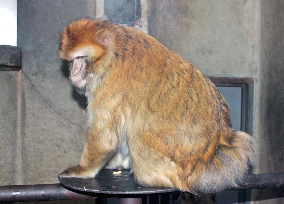 バーバリーマカクの分布域・生息環境 バーバリーマカクはアフリカ北西部のモロッコやアルジェリアなどに分布していて、多くはモロッコ側のアトラス山脈で見られるが、一部のバーバリーマカクは対岸のジブラルタルにも生息している。 ジブラルタルに生息しているものは、ヨーロッパで見られる唯一の野生ザルと言われているが、観光化してしまっている面もあり、半ば野生を失ってしまっていると言われている。 また、ジブラルタルのものは自然分布ではなく、7~8世紀頃にイスラム圏から導入されたものとも言われている。 バーバリーマカクは低地から山地に生息していて、標高2500m辺りのところでも見られる。 高山の崖や峡谷などで多く見られるが、低地の草原にも生息している。 バーバリーマカクの大きさ・特徴 バーバリーマカクは平均するとニホンザルほどの大きさで、体つきはがっしりとしている。 体の大きさには幅があるが、雄は体長55~65cm、体重は10~16kg程であるのに対して、雌は体長45~55cm、体重7~11kg程で、体は雄の方が大きい。 四肢には5本の指があり、爪はすべて平爪をしている。 親指は他の4本と対向していて、物をつかむことができる。 また、ニホンザルのように、頬には一時のあいだ食べ物を蓄えておくことができる頬袋をもっている。 その為、食べ物を効率的に集めたのち、外敵などがいない安全な場所でゆっくりと食べることができる。 尾は痕跡程度で、あっても極めて短いのが特徴になっている。 この為、ゴリラやチンパンジーのようにエイプ(尾がないサル)として、バーバリーエイプと呼ばれることもある。 毛はやや長くて厚く、毛色は黄色っぽい灰色や灰色を帯びたような茶色、褐色などで、腹面は白っぽい色をしている。 バーバリーマカクの生態・生活 バーバリーマカクは比較的標高の高い渓谷や断崖などの環境を好み、杉や樫の木が多い森林地帯に生息している。 標高1500~2500m程のところに多く見られるが、標高の低い雑木林や岩のある低木林、低地の草原などでも見られる。 社会的な群れをつくって生活していて、平均した群れの数は20~25頭程だが、時には60頭程の群れになることもあり、それ以上の大きな群れをつくることもある。 また、バーバリーマカクの雌は、出生した群れに留まることから、群れは母系家族であるほか、雌雄共に社会的な階級をもっている。 特に雌の階級ははっきりとしていて、群れの中の序列は、優位な雌の血筋によって決定される。 優位な雌の子どもは劣位の雌の子どもよりも上位で、新しく生まれた雌は、姉となる雌よりも優位にあると言われている。 一方、雄にも優劣が見られるが、その階層は緩やかなものと考えられている。 バーバリーマカクは日中に活動し、昼の間は多くの時間を採餌や移動に費やし、夜は数頭の同姓が集まって樹上や洞窟などで休む。 木登りも巧みで、採餌は地上と樹上の両方で行われ、主に果実や花、木の葉や種子、芽、樹皮、球根などの植物質のものを食べる。 また、バッタなどの昆虫類やミミズ、クモやカエル、オタマジャクシなど、バーバリーマカクは季節によって様々なものを食べる。 行動範囲は3~9平方km程度、平均すると7平方Km程度と言われているが、行動範囲はしばしば他の群れと重複している。 コミュニケーションは様々な鳴き声によって行われるが、隣接する他の群れの鳴き声も聞き分けることができ、群れによって鳴き声が違っているとも言われている。 外敵は大型のワシなどの猛禽類で、危険を感じ取ると警戒音を発して仲間に知らせ、高い樹幹部に逃げて身を隠す。 幼いものなどはジャッカルやアカキツネなどに襲われることもあるが、一番の外敵は人とも言われていて、森林伐採などの開発などが脅威になっている。 バーバリーマカクの繁殖・寿命 バーバリーマカクの繁殖期は主に11~12月頃で、繁殖は一夫多妻で行われ、より支配的な雄は交尾の機会が多い。 雌の妊娠期間は概ね160~170日程で、1産1~2子、普通は1子を出産する。 出産は4~6月頃に多く見られ、生まれたばかりの子どもの体重は400~500g程で、7~12ヵ月程の授乳期間がある。 雌雄共に4年を過ぎた頃には性成熟し、雌は出生した群れに残るが、雄はその頃には群れから離れ、別の群れに加わるまで、若い雄だけの群れに入っていく。 バーバリーマカクの飼育下での寿命は25年程度、野生では17~22年程度と考えられていて、雌の方が長生きするとも言われている。 ところで、バーバリーマカクは雌も複数の雄と交尾し、群れの中のほぼ全ての雄と交尾すると言われている。 この行為によって父親の特定が困難になり、すべての雄が子育てに参加することを促していると考えられている。 実際、バーバリーマカクは雄も育児に参加することが観察されている。 群れの仲間が共同で育児を行うことも観察されていて、雌たちだけでなく、若い雄も参加し、外敵などからも子どもを守るようにしている。 また、雄同士が争うような場合、劣勢の