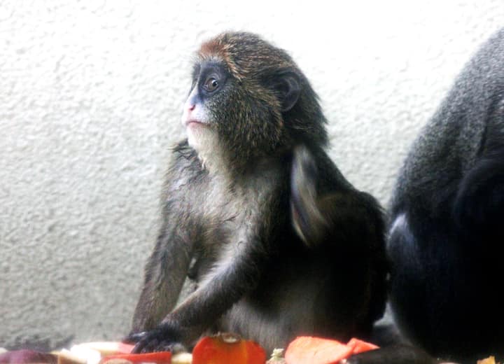 | ブラッザグエノン(ブラッザモンキー)はアフリカに広く分布しているオナガザルの仲間で、「世界で最も美しいサルのひとつ」とも言われている。 雌雄ともに、額には三日月状のオレンジ色の毛があり、特徴的な顔立ちをしている。