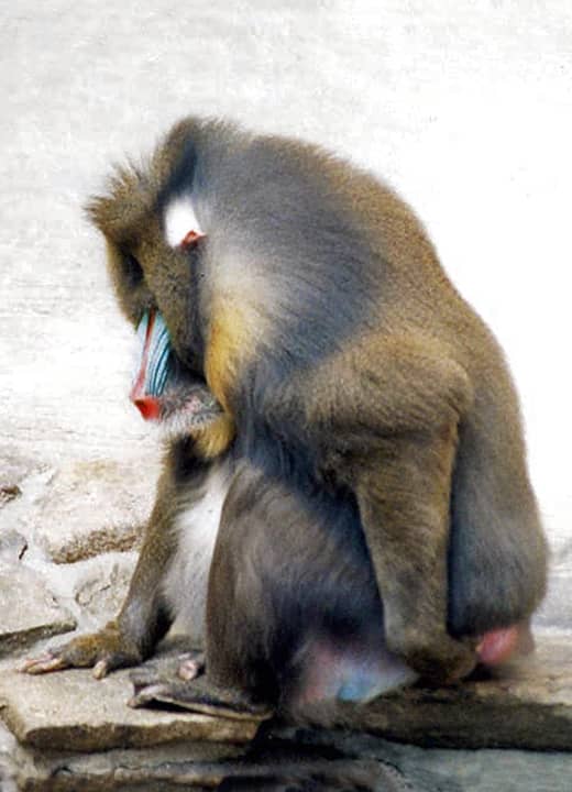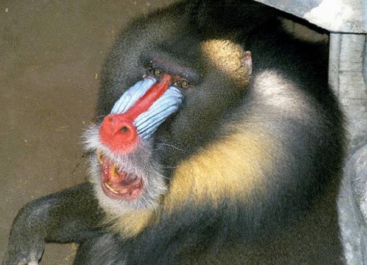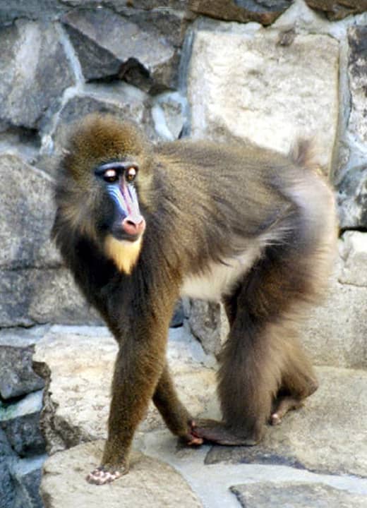 | マンドリルはアフリカ西部に分布しているオナガザルの仲間で、雌雄ともにかなり特徴的な顔をしている。 雄は特に色鮮やかな顔をしていて、がっしりとした重量感のある体つきをしているが、雌は対照的にほっそりとした体つきをしている。