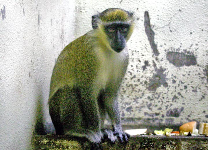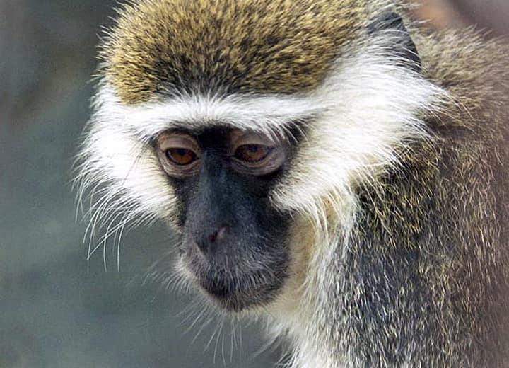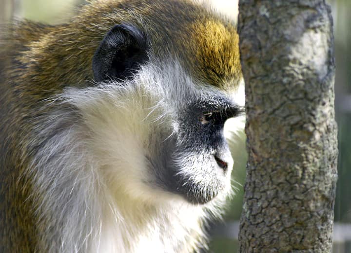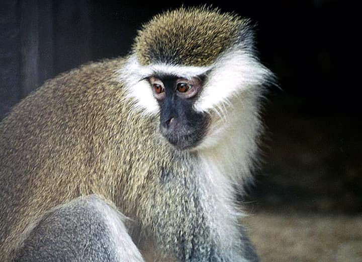 サバンナモンキーの分布域・生息環境 サバンナモンキーはアフリカのサハラ砂漠より南に広く分布していて、主に森林やサバンナなどに生息しているが、種によっては岩場や半砂漠地帯などの乾燥した地域などにも生息している。 サバンナモンキーの大きさ・特徴 サバンナモンキーは種によって大きさに違いがあるが、体長は平均すると30~60cm程で、体は全体に細っそりとしている。 また、四肢は長く、尾も体長と同じくらい長い。 体は雄の方が大きいが、雌雄共にニホンザルと同じように、頬には食べ物を一時のあいだ蓄えておくことのできる頬袋をもっている。 毛は一般に短くてビロード感があり、毛色は淡い黄色や灰色、オリーブ色を帯びた茶色、ダークブラウンなどで、アグーチ色のような感じもするが、サバンナモンキーの毛色や体格は種によって変化がある。 しかし、ふつうサバンナモンキーの顔や四肢の先には毛がなく、黒っぽい色をしていて、顔の周りにはフサフサとした白い毛が見られる。 この白い毛は胸から腹部へ続き、四肢の内側なども白っぽいほか、雄の陰茎は赤色、陰嚢は青色で、遠くからでもかなり目立つ。 サバンナモンキーの生態・生活 サバンナモンキーは、名前の様にほとんどのものがサバンナや草原地帯で生活しているが、岩山や半砂漠地帯などでも見られる。 ふつうは1頭、或いは複数の雄に率いられた群れで生活し、大きいものでは70~100頭程が集まって一緒に生活していることもある。 昼間に活動し、夜は木の上で休むが、半樹上性の生活をしていて、サバンナモンキーは他のサル類よりも地上性が強いと言われている。 日中の多くを地上で過ごしていて、早朝や夕方には特に活発に活動し、動きも敏捷で跳躍力にも優れている。 果実や木の実、木の葉、根などの植物質のものを食べるが、雑食性で、昆虫やトカゲ、鳥や鳥の卵など、動物質のものもかなり食べ、サバンナモンキーは季節や地域によって様々なものを食べている。 行動範囲は0.06~1.78平方km程と言われていて、種や生息環境、食糧事情などによって大きな幅がある。 しかし、河川や湖沼などの水場から遠く離れることはなく、水は毎日飲む。 外敵はライオンやヒョウ、チーターやハイエナなどで、子どもなどは大型のヘビや猛禽類に襲われることもある。 サバンナモンキーの繁殖・寿命 サバンナモンキーの繁殖期は、種や地域によって変化があるが、ふつうは一夫多妻で繁殖が行われる。 雌の平均した妊娠時間は163~165日程で、雨季のはじまる頃にふつうは1産1子を出産する。 子どもは半年ほどで離乳し、雌雄共に4~5年ほどで性成熟する。 また、雌は成熟した後も出生した群れに残るが、雄は性成熟する頃には群れを離れていく。 サバンナモンキーの野生での寿命は10~12年程度と言われているが、飼育下ではこれよりも長く、20年を超えることが知られている。 サバンナモンキーの保護状況・その他 サバンナモンキー(chlorocebus属)は、以前はひとつの種(グリベットモンキー/Cercopithecus aethiops)として扱われていたが、現在では次の6種が認識されている。