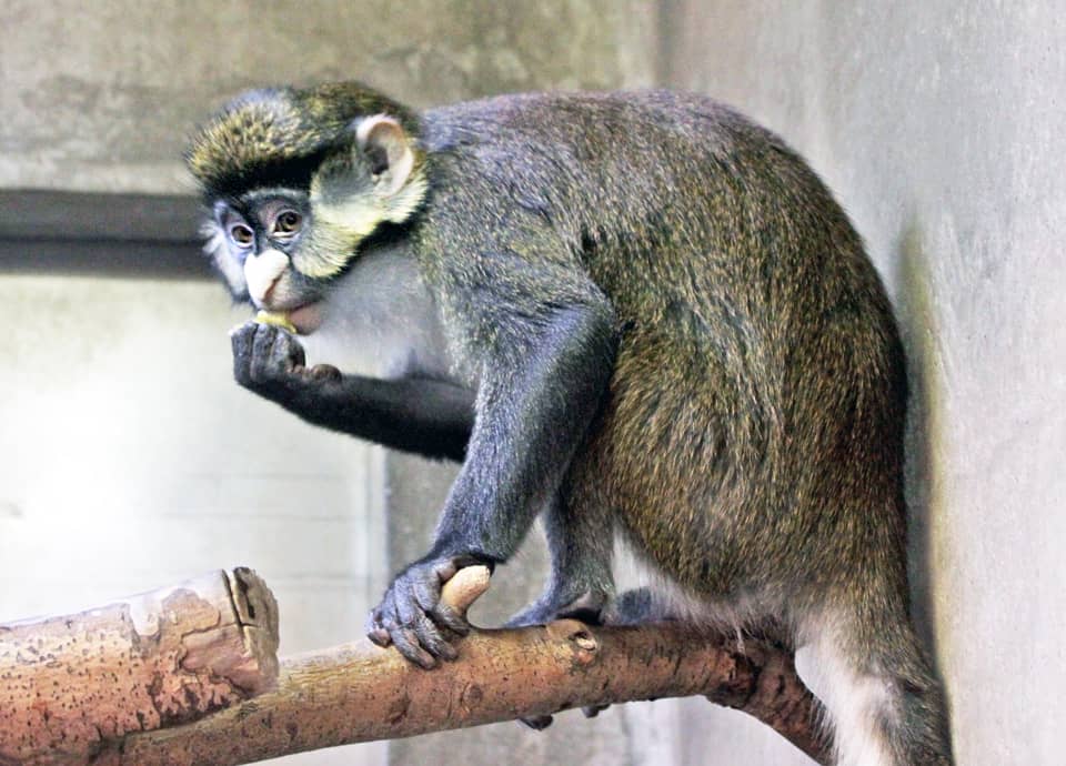 シュミットグエノンの分布域・生息環境 シュミットグエノンはアンゴラ北部や中央アフリカ共和国、コンゴ民主共和国やウガンダ、ケニア南西部、ルワンダ、スーダン南部、タンザニア西部、ザンビア北部など、アフリカに広く分布しているアカオザルの亜種で、シュミットグエノンはウガンダやケニア、ルワンダやコンゴ民主共和国などに分布している。 低地から山地の熱帯雨林などに生息しているが、湿地林や二次林、河川沿いの森林地帯などにも生息している。 シュミットグエノンの大きさ・特徴 アカオザルは体長35~65cm程度、体重3~4.5kg程度で、体は雄の方がやや大きいが、雌雄共に体の大きさの違いを除けばよく似ている。 シュミットグエノンもこの範囲の大きさで、雄の平均した体長は46cm程度、平均体重は4kg程で、雌では平均した体長が38cm程度、平均体重は3kg程になる。 体毛は黄褐色のような感じで、腹側は淡色で白っぽい色をしている。 また、シュミットグエノンの目の周りは青色で、頬には白っぽい毛が房毛のように伸びているのが特徴になっている。 この毛は耳の近くまで広がっているが、鼻にもショウハナジログエノンのような白いスポットがあり、このスポットは正面から見るとハート形をしていて、シュミットグエノンはきわめて特徴的な顔をしている。 尾は体長よりも長く、尾の色は先に行くにしたがって明るい茶色になっている。 「アカオザル」の名前は、この尾の色から付けられていて、英名の「Red-tailed monkey」も同じことから付けれている。 また、シュミットグエノンは、ニホンザルのように食べ物を一時の間保存しておくことができる頬袋をもっていて、この頬袋は胃とほぼ同じ量を蓄えてことができると言われている。 シュミットグエノンの生態・生活 シュミットグエノンは低地から山地の熱帯雨林や湿地林、二次林などに生息していて、群れをつくって生活している。 群れの数は10~15頭ほどで、1頭の雄と複数の雌、その子どもたちから構成されている。 多ければ25~30頭程の群れをつくることもあるが、雄だけの群れも見られる。 シュミットグエノンは昼間に活動するが、日中は休んでいることが多く、早朝や夕方になると活発に活動する。 また、ほとんどの時間を樹上で過ごし、多くの時間を採餌に費やしているが、体長よりも長い尾は、樹上でのバランスをとるのに役立っている。 雑食性で、主に果物や種子、木の葉や花などを食べるが、樹脂や昆虫類なども食べる。 ほかのアカオザルと同様、シュミットグエノンも縄張りを主張し、他の群れに対しては争う習性があるが、マンガベーやコロブスの仲間など、他の霊長類とは一緒に採餌する様子が観察されている。 外敵は大型のヘビや猛禽類、ヒョウなどの他、チンパンジーに襲われることもある。 シュミットグエノンの繁殖・寿命 繁殖は11~2月頃に多く見られるが、シュミットグエノンは年間を通して繁殖する。 繁殖は一夫多妻で行われ、雌の妊娠期間は5~6ヶ月程と考えられていて、ふつうは1産1子を出産する。 生まれたばかりの子どもの体重は400g程度で、灰色の毛色をしている。 尾は茶色で、鼻の斑ははっきりとしているが、頬の房毛は生えていない。 育児は主に雌によって行われるが、群れの中の雌が手伝うこともあり、雄は6年、雌は4~5年程で性成熟する。 雌は成熟した後も出生した群れに残るが、雄はその頃には群れを離れていく。 飼育下でのシュミットグエノンの寿命は、他のオナガザルの仲間と同様、30年程度と考えられている。 一方、野生下での寿命は分かっていないが、飼育下よりは短く、10年程度とも言われている。 また、自然下では、アカオザルとアオザル(Cercopithecus mitis)は交雑し、繁殖力のある子どもを産むことが報告されている。 シュミットグエノンの保護状況・その他 シュミットグエノンを含むアカオザルは、現在のところ絶滅の恐れはないとされているが、開発などによって生息地が減少していて、それに伴い生息数も減少している。 また、生息地が開発されて耕作地に置き換わった地域では、耕作地に現れ、トウモロコシやバナナ、キビやカボチャなどの作物も食べることから、害獣として駆除されることもある。 尚、アカオザルには次の亜種が確認されている。 Cercopithecus ascanius ascanius C. a. atrinasus C. a. katangae C. a. schmidti C. a. whitesidei |