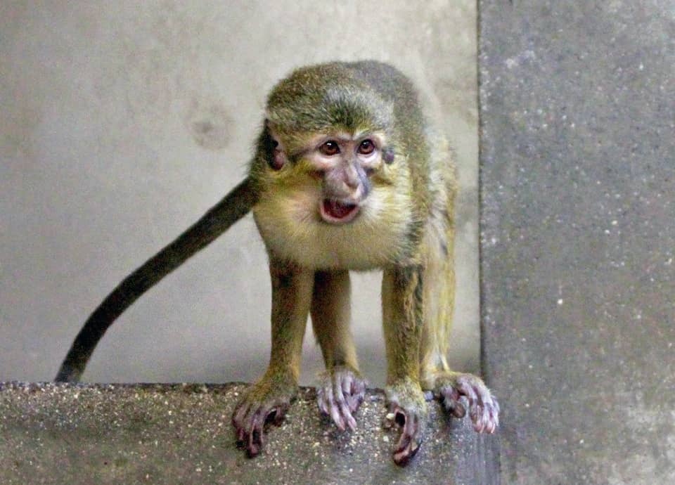 タラポアンの分布域・生息環境 タラポアンの仲間はカメルーンやガボン、赤道ギニア、コンゴ共和国西部、コンゴ民主共和国西南部、アンゴラ北部などの西アフリカに分布している。 アンゴラタラポアンはミナミタラポアンとも呼ばれていて、コンゴ民主共和国南西部とアンゴラ北部などのコンゴ川の南に分布している。 ガボンタラポアンはキタタラポアンとも呼ばれていて、カメルーン南部や赤道ギニア、ガボン西部 、コンゴ共和国西部などに分布している。 いずれも森林地帯に生息しているが、湿地や河川沿いなど、水辺近くを好む傾向がある。 また、タラポアンは食べ物を容易に得ることができる耕作地周辺などにも姿を見せ、村や集落などに現れることもある。 タラポアンの大きさ・特徴 タラポアンの仲間はアフリカで最も小さいサルの一種で、旧世界ザルの中でも最小の種と言われている。 体はリスザルよりは大きいが、アンゴラタラポアンの体長は32~45cm、体重は0.8~1.9kg程しかない。 ガボンタラポアンでは、体長23~40cm、体重は0.8~1.7kg程で、アンゴラタラポアンよりは体が小さい。 また、どちらの種も体は雄の方が少し大きいが、雌雄ともに頭部は丸くて大きく、目も大きい。 毛色は緑がかった黄色や緑色を帯びたような灰色、黒色などで、腹面は白色や灰白色をしている。 尾は体長よりも長く、上面は灰色や茶色がかった黒色で、下面は黄色っぽい灰色をしている。 また、タラポアンはニホンザルと同じように頬袋をもっていて、食べ物を一時の間蓄えておくことができる。 タラポアンの生態・生活 タラポアンの仲間は主に低地の森林地帯に生息しているが、湿地林や二次林などを含むさまざまな森林に適応している。 しかし、川や沼などの水辺に多く、水源から遠く離れたところでは見られない。 また、海岸に近いマングローブ林にも多く見られることから、マングローブモンキーと呼ばれることもある。 昼間に活動し、60~80頭程の大きな群れで生活しているが、食べ物を容易に入手できる耕作地周辺などでは、群れが大きくなる傾向があり、100~120頭の群れをつくることもある。 群れの中では雄よりも雌の数の方が多いが、これらの群れはサブグループから構成されている。 雄だけのグループと雌とその子どもたちのグループ、また若いものたちだけの群れも見られると言われている。 採餌に出かける時はいつくかのグループに分かれるが、その時は同性のものが集まり、子どもは雌のグループと一緒に採餌する。 夜には再び集まって、水辺近くの樹上で休み、母親と子どもは一緒に休んでいる。 樹上にいることが多いが、タラポアンは地上で採餌することも多く、主に果実や木の葉、種子などのほか、昆虫や鳥の卵、トカゲなどを食べる。 また、タラポアンは泳ぎもうまく、水生植物も食べるほか、耕作地の近くに生息しているものは、時に農作物を荒らすこともある。 外敵はヒョウや大型のヘビなどで、危険を感じると水に飛び込み、泳いで逃げることもある。 夜間は川に張り出した木の枝などで休むのも、外敵が近づいても、すぐに川の中に逃げ込むことができるからと言われている。 この他、タラポアンは比較的小さな行動範囲をもっているが、他のグエノンと異なり、縄張りはもっていないと言われている。 タラポアンの繁殖・寿命 タラポアンの繁殖期は5~9月頃と言われていて、この時期には雌雄ともに異性のグループに加わり、雌も複数の雄と交尾する。 雌は妊娠期間158~166日程で、ふつうは1産1子を出産する。 生まれたばかりの子どもの体重は180~200gほどもあり、母親に比べるとかなり大きい。 育児は主に母親によって行われるが、タラポアンは他の雌も育児に関わり、ほかの子どもに授乳することも観察されている。 成長は早く、6週間程の授乳期間の後、3ヵ月程で独立し、雄はその後半年ほどで他の若い雄のグループに加わるようになる。 雌は4~5年程で性成熟するが、雄は雌よりも1~2程遅れて性成熟する。 タラポアンの詳しい寿命は分かっていないが、飼育下では28年の記録が残っている。 但し、種や生まれた日時などが不明で、正確な年齢は分かっていない。 野生下での寿命も分かっていないが、一般に飼育下の寿命よりも短くなる。 タラポアンの保護状況・その他 タラポアンの仲間は、近年の開発などにより生息地が減少していて、それに伴い個体数も減少している。 現在、アンゴラタラポアンは国際自然保護連合(IUCN)で絶滅危惧種(VU)として指定されていて、アンゴラではほとんど見られなくなっている。 ガボンタラポアンも生息数が減少していて、準絶滅危惧種(NT)に指定されているが、森林の伐採や開発は止まず、食用のための狩猟も行われていて、個体数の減少は、いずれの種も考えている以上に深刻なものになっていると言われている。 |