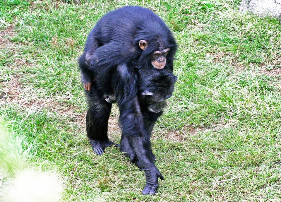 | このページでは、本文ページでは掲載できなかったチンパンジーの写真を紹介しています。 チンパンジーは動物園などでも人気のある動物で、知能も高く、簡単な道具を使うこともできます。 遠くから見ていると小柄に見えますが、チンパンジーは立ち上がると1.3~1.7m程にもなり、人の身長とほぼ同じくらいの高さがあます。 また、チンパンジーの分布域や生態、繁殖や寿命などの詳細については、本文のプロフィールで紹介していますが、本文ページにも数枚の写真を掲載しています。 |
