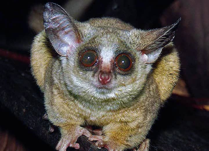 ショウガラゴの分布域・生息環境 ショウガラゴは、西アフリカのセネガルからブルキナファソ、ナイジェリアなどを経て、チャドや中央アフリカ共和国、コンゴ民主共和国などを通り、東はエチオピアやケニア、ソマリアまで、アフリカ中央部に帯のように分布している。 アフリカ大陸で最も広く分布している霊長類とも言われていて、タンザニアにも分布している。 ショウガラゴは深い森林や雑木林、荒れた草木地帯など、多雨林地帯と周辺のさまざまな環境に適応していて、草原地帯では見られないが、河川沿いの森林や耕作地周辺の森林などにも生息している。 ショウガラゴの大きさ・特徴 ショウガラゴは、体長が15~20cm程度、体重150~300g程で、雄は雌よりも僅かに大きい。 体毛は短いが密生していて厚く、鼻や四肢の裏側以外は全身が毛で被われている。 毛色は銀灰色から褐色、灰褐色などをしていて、目は大きくて丸く、耳も大きくてよく目立つのが特徴になっている。 ショウガラゴの耳は左右を別々に動かすことができるほか、自由に曲げたり折りたたむこともできる。 その為、暗闇の中でも獲物の音を聞き取ることができ、外敵などの位置もよくとらえることができる。 四肢には5本の指をもっているが、指は長く、指先にはしっかりと木の枝などを握ることができるように平らな肉球がある。 また、後肢の第2指だけは鉤爪で、他の爪はすべて平爪になっているが、後肢の筋肉はよく発達していて、ショウガラゴは跳躍力にも優れている。 体は小さく、オオガラゴの半分程度しかないが、握力も強く、後ろ足だけで木の枝にぶら下がることができ、そのまま体を起こすこともできる。 尾も体長よりも長く、樹上でバランスを取る役目を果たしている。 ショウガラゴの生態・生活 ショウガラゴはさまざまな森林地帯やサバンナ林などに生息していて、2~5頭ほどの小さな群れで生活している。 大きな群れをつくることは滅多になく、普通は雌はその子どもたちと生活し、雄は単独で生活しているか少数の群れをつくっている。 ショウガラゴはほぼ完全な夜行性の動物で、昼間は木の洞や茂みなどにつくった巣の中で休んでいるが、時には鳥が使い終わった古い巣穴などを利用して眠っている。 夜になると寝床を離れて活動をはじめるが、採餌は単独で行われ、夜明け頃になると再び寝床に集まってくる。 雌雄はそれぞれに行動範囲をもっていて、はっきりとした行動範囲は分からないが、ひと晩に2km程を移動するとも言われている。 また、ふつうは雄の行動範囲は雌よりも広く、1~5頭ほどの雌の行動範囲と重なっている。 行動範囲は縄張りにも結び付いていて、縄張りには尿でマーキングをするが、ショウガラゴは手足を尿で湿らす習性がある。 これは、移動したときに手足につけた尿が樹木などについて残り、その後が縄張りの印になる為と考えられている。 動きはかなり素早く、同じ夜行性であるスローロリスなどとは違って、暗闇の中でも枝から枝へ敏捷に移動し、動物園などで見ていても、目には止まらないほどの速さで動き回っている。 樹上では、水平に延びる枝よりも、垂直に延びる幹などにしがみつく習性があるが、ショウガラゴはリスの様に頭を下にして木から降りることもできる。 棘などがある植物の間は、耳を後ろに折り曲げるようにして抜けて行くが、地上でも俊敏で、跳躍力に優れた後肢で跳躍し、その距離は3m以上にもなる。 また、短い距離なら後足だけでピョンピョンと跳ねるように移動する。 食性は雑食性で、樹脂や果実、種子などのほか、無脊椎動物や小鳥、その卵なども食べる。 採餌は樹上と地上の両方で行われるが、昆虫類もよく捕らえ、特にバッタ類を好む。 昆虫類を捕らえるときは跳躍して飛びついて捕まえるが、聴力はかなり優れていて、昆虫の羽ばたく音を聞き分け、手を伸ばして捕まえることもある。 この時、大きな目が役立っているが、ショウガラゴの目にはイヌやネコなどに見られる「輝膜(こうまく、タペタムとも)」と呼ばれる反射層があり、これによって光を増幅して、暗闇でも正確にものをとらえることができている。 また、ショウガラゴは樹脂をよく食べるが、樹脂は昆虫の少ない寒い時期には大切な食料源になっている。 樹脂は舐めとったり、固まったものは齧りとったりして食べるが、樹脂に含まれるタンパク質やカルシウムなどは昆虫や果物類の10倍ほどもあると言われている。 樹脂にはマグネシウムやカリウム、繊維質なども含まれていて、胃の中には樹脂を分解するバクテリアがあり、効率よく栄養を摂取している。 また、ショウガラゴは夜行性だが、気温が低い時には夜間の採餌時間を減らし、日中に活動することもある。 性質はおとなしく、鳴き声は高いチューチューというような声をあげるが、様々な鳴き声を出して仲間とのコミュニケーションをとり、特に朝夕にはよく鳴き声をあげる。 外敵はジャコウネコの仲間などが考えら