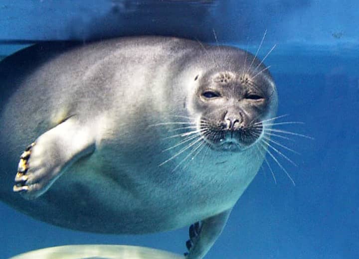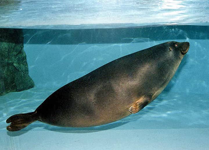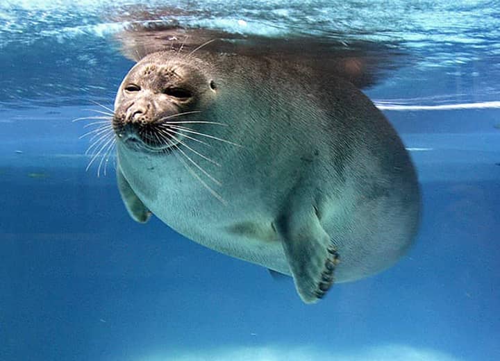 バイカルアザラシの分布域・生息環境 バイカルアザラシは、ロシアのバイカル湖と、そこから流れる河川におよそ6~9万頭ほどが生息すると考えられていて、バイカル湖の生態系の頂点にあるとされている。 ゼニガタアザラシやワモンアザラシの一部も淡水域に生息しているが、バイカルアザラシは種全体が淡水域に生息している唯一のアザラシとされている。 バイカルアザラシの大きさ・特徴 バイカルアザラシの平均した体長は1.2~1.4m、体重は60~70kg程で、もっとも小さなアザラシのひとつと言われている。 体は雄の方が雌よりも僅かに大きく、雌雄ともに春から秋にかけては体重が3~4割ほども増加するが、繁殖後の換毛期には体重は減少する。 他のアザラシと同様、尾はほとんどなく、耳介(耳たぶ)もないが、バイカルアザラシの目は頭部に対してかなり大きいのが特徴になっている。 これは水中で視覚を頼りに獲物を探す為だと考えられている。 四肢は鰭状になっているが、いずれも5本の指があり、先には鋭い爪がある。 前肢は大きくてよく発達していて、水の中で推進力を得るのに適していて、後肢は梶の役割を果たしている。 体毛は全身が濃い灰褐色で、腹部は少し黄色を帯びたようにも見え、稀に暗色の斑があるものも見られる。 バイカルアザラシの生態・生活 バイカルアザラシは普段は単独で生活していて、季節によって湖の中を移動する生活をしている。 夏の間は湖全体に渡って見られるが、湖が凍結する冬期には北部へ集まり、越冬と繁殖が行われる。 その移動距離は、9月から翌年5月までに400~1600km程を移動することが観察されている。 繁殖期の春になると多くのものが集まり、その数は200~500頭ほどにもなり、夏には湖岸や流氷などに大きな群れが見られるようになる。 また、繁殖の後には新しい毛に生え換わるが、この期間は氷上や岸に上がり、ほとんど餌をとらなくなる。 バイカル湖は、冬には80~90cm程の厚さの氷で覆われるが、湖が氷で覆われている冬季には、氷に開けた呼吸用の空気孔の近くで活動している。 孔の近くには幾つかの補助的な孔もつくられているが、餌の多いような環境では、何頭かが集まり、呼吸用の孔を一緒に使うこともある。 バイカルアザラシは主にカジカやハゼなどの魚類や甲殻類などを食べるが、採餌は夕暮れや夜間に行われることが多い。 昼間は餌となるカジカ類が水深100mよりも深いところにいるが、日が暮れてくると水深10~25m辺りまで上がってくるので、バイカルアザラシはこれを狙って夜間などに採餌することが多い。 この時は主に触覚に頼って採餌しているが、日中では視力によって獲物を捕らえている。 水中ではかなり自由に動き回り、獲物を追うときなどの泳ぐ速さは、時速20~25kmほどにもなると言われている。 バイカルアザラシは潜水能力にも優れていて、潜水時間の多くは10分未満だが、長いときは数十分の潜水が可能だと言われている。 また、バイカル湖の水深は1600~1700m程の深さがあるが、バイカルアザラシは水深400mもの深さまで潜ることができると言われている。 地上や氷上での移動は、アシカ類とは違って後ろ足が後方に向かっているので、地上では後肢を地面につけずに、腹部を地面につけて前肢を使って移動する。 外敵はヒグマが挙げられるが、子どもはアカギツネやワシなどの猛禽類に襲われることもある。 しかし、ヒグマなどに襲われるよりも、人が一番の外敵になっていて、毛皮を目的とした乱獲や漁具による事故なども脅威になっている。 ところで、海から数百キロも離れた湖に、どの様にしてバイカルアザラシが生息するようになったのか、はっきりした事は疑問のままである。 かつてバイカル湖は北極海と繋がっていたと考えられていて、およそ2500~3000万年前に孤立して形成された世界最古の湖と言われている。 バイカルアザラシは、200万年ほど前からバイカル湖に生息していたと考えられているが、バイカル湖がまだ北極海と川で繋がっている時に遡上してきて、その後、淡水に適応するようになったと考えられている。 バイカルアザラシの繁殖・寿命 バイカルアザラシの繁殖期は4~6月ころで、繁殖は一夫多妻で行われる。 交尾は水中で行われ、雌は妊娠期間9ヶ月ほどで、ふつう1産1子、時に双子や、非常にまれだが3~4子を出産することもある。 出産は2~3月頃に見られ、氷上にドーム状につくられた巣穴の中で出産する。 巣は長さ4~5m、幅2m程のもので、生まれたばかりの子どもの体長は65~70cm程で、3~4kg程の体重がある。 体は長くて白い毛で覆われているが、6~8週間ほどで成獣のような毛色に生え換わる。 育児は雌によって行われ、子どもは巣穴の中で育てられ、2~3ヶ月ほどの間は授乳される。 その後は徐々に魚やカニなどの甲殻類を食べるようになり、氷が解ける頃には独立していく。 雄は4~7年、雌は3~6年で性成熟するが、雄はやや遅く、4~7年ほどで性成熟する。 また、バイカルアザラシの寿命は他のアザラシよりも長く