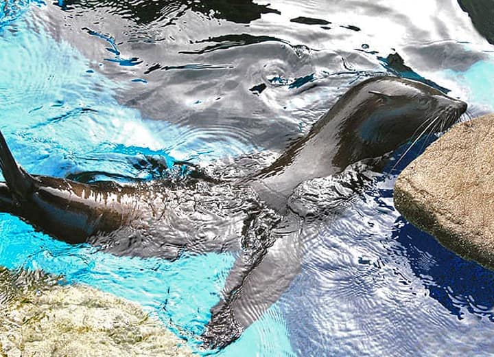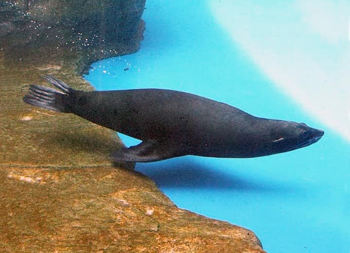 ミナミアメリカオットセイの分布域・生息環境 オットセイの仲間は北半球に分布するものと南半球に分布するものがいるが、ミナミアメリカオットセイは、南アメリカの太平洋側、ペルー南部からチリを経て、大西洋側のアルゼンチンからウルグアイ、ブラジル南部にかけて分布している。 フォークランド諸島やスタテン島、エスコンディーダ島などでも見られ、沿岸から沖合いにかけて生活している。 ミナミアメリカオットセイの大きさ・特徴 ミナミアメリカオットセイの体の大きさは地域によって差があるが、一様に雄の方がかなり体が大きく、首や肩などもがっしりとしている。 雌では体長1.4m、体重が50kgのものは大きいとされるが、雄では体長1.9m、体重は200kg程にまで成長する。 雌雄とも、体には脂肪が蓄えられていて、寒さから体を守ったり、水中での浮力を与えたりしている。 体は水の中での生活に適した細長い紡錘形で、吻は尖っていて、鼻孔は口より先にあり、前向きに開いている。 耳は長くて耳たぶ(耳介)があり、水の中では鼻と耳を塞ぐことができる。 四肢には5本の指があるが、いずれも水かきで繋がっていて、魚のヒレのようになっている。 また、尾はきわめて短く、後肢の間に隠れている。 毛は密生していて、雄の毛色はふつう濃い灰色や暗褐色で、首や肩などの毛が長くなっている。 雌や若い雄などは暗い茶色や灰色を帯びた黒色で、胸が黄褐色や灰色などをしている。 一見してカリフォルニアアシカなどに似ているが、頭部は丸くて、吻は短く尖っている。 体は小さいが、耳が大きいほか、ミナミアメリカオットセイには下毛があり、毛はアシカよりも長くて良質とされている。 ミナミアメリカオットセイの生態・生活 ミナミアメリカオットセイは、普段は5~20頭ほどの群れをつくって、海と海岸の両方で生活している。 しかし、繁殖期以外は海の中にいることが多く、眠るときも海上に浮かんで眠っている。 陸の上では海に近いところに留まっているが、日中は強い日差しを避けて、岩影や海岸にある洞窟などで過ごしていることが多い。 陸上での動きは素早くはないが、アザラシ類とは違い、四肢で体を支えて歩くことができ、時には15m程の高さの岩場に登っているようなこともある。 一方、水の中での動きは敏捷で、ヒレ状になっている四肢を使って巧みに泳ぎまわる。 普段はゆっくりと遊泳しているが、獲物を追うときなどの泳ぐ速さは時速20~25km程に達すると言われている。 ミナミアメリカオットセイは潜水能力にも優れ、水深170m辺りまで潜ることができ、7分程のあいだは水中に留まることができる。 遊泳力にも優れていて、海岸から600km程も離れた場所で観察されている。 採餌は主に夕暮れや明け方に行われ、魚類のほか、エビやオキアミなどの甲殻類、イカなどの軟体動物などを食べる。 しばしば群れで獲物を追うことがあるが、単独で採餌することも多い。 外敵はホオジロザメやシャチ、オタリアなどだが、ミナミアメリカオットセイは繁殖地では大きな群れになるため、あまり個体数が多いと、生まれた子どもが踏みつぶされたり、母親とはぐれてしまうようなこともある。 ミナミアメリカオットセイの繁殖・寿命 ミナミアメリカオットセイの繁殖期は10~12月頃で、この頃には、雌雄共に海岸に集まってきて大きな群れをつくる。 繁殖は一夫多妻で行われるが、雄は先に上陸して、雌の獲得と繁殖のために必要な縄張りを獲得する。 この時には雄同士が互いに争い、優位な雄が多くの雌と広い縄張りをもつことができる。 雌は雄よりも遅れて陸に上がり、出産に適した場所を選ぶ。 その為、出産に都合のよい場所を獲得した雄が、より多くの雌を獲得することにもなる。 また、雌は上陸した後にすぐに出産するが、ミナミアメリカオットセイの妊娠期間は11~12ヶ月だが、3~4ヶ月の遅延着床の期間が含まれているので、繁殖期と出産期が重なっている。 雌はふつうは1子を出産し、出産後7~10日程で交尾を行う。 生まれたばかりの子どもは体長60~65cm程度、体重は3.5~5.5.kg程で、毛色は黒く、生後3~4ヶ月で親と同じような色になる。 雌は数日間を海で過ごし、その後、子どもの世話をするために数日間は陸に留まるといった生活を送る。 また、育児は雌が行い、雄が手伝うことはないが、雄は雌や縄張りを守るために、繁殖期は採餌することがなくなってしまう。 その間は蓄えた脂肪で生活するので、体重は大きく減少する。 子どもは生後3~4週間ほどで海に入れるようになり、2ヵ月を過ぎる頃には上手く泳げるようになる。 授乳期間はふつう半年から1年程だが、時に3年程の長さがあるとも言われていて、その場合、雌は同時に2子を育てることになる。 雌は3年程で性成熟するが、雄はそれよりも遅く、5~7年程で性成熟する。 しかし、雄の実際の繁殖はそれより遅く、体が十分に大きくなってから行われる。 ミナミアメリカオットセイの野生での寿命は詳しく知られていない