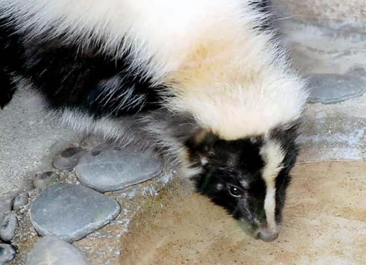 | シマスカンクは北アメリカに幅広く分布していて、馴染みのある動物としてよく知られている。 普段は単独で生活していて、低地から山地まで、様々な環境に適応している。