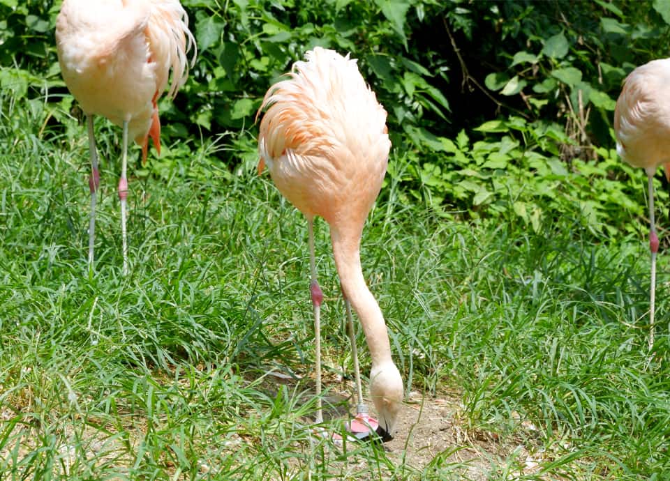 | チリーフラミンゴは南アメリカに分布している大型のフラミンゴで、アルカリ性の湖沼や湿地、汽水域や沿岸域などに生息している。 足は灰色がかった黄色のような色をしているが、関節部分と水掻きは鮮やかなピンク色をしている。