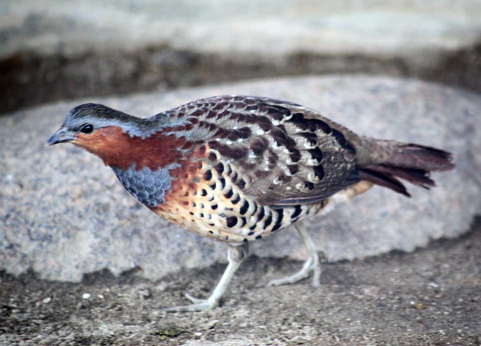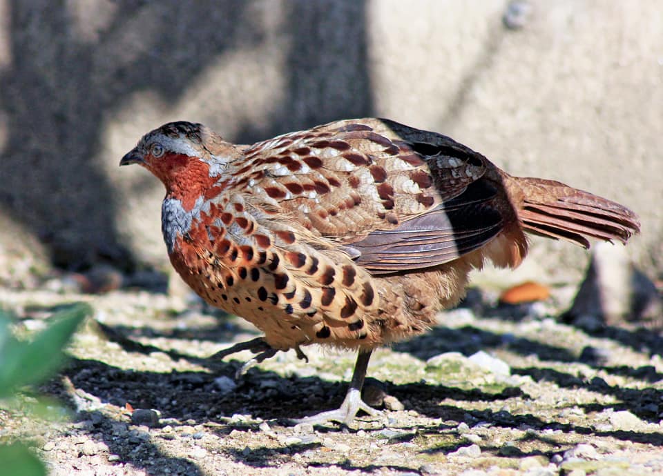 | コジュケイは小型のキジで、国内では移入定着している。 本州より南に生息しているが、警戒心が強く、姿を見せることは少ない。