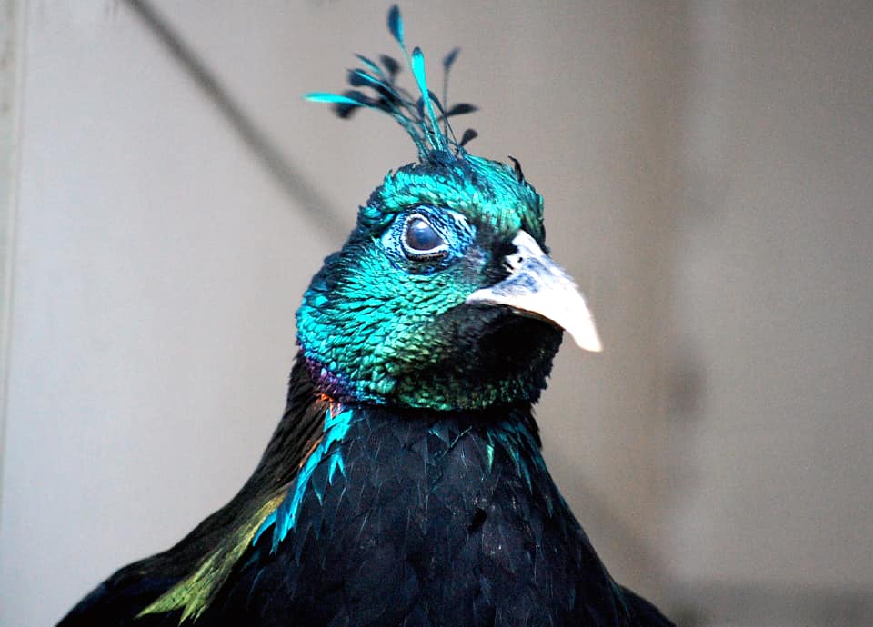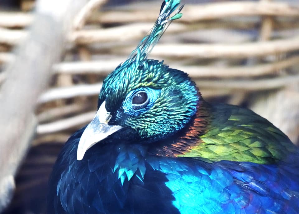 | ニジキジはヒマラヤ山系に分布している大型のキジで、体つきは他のキジ科の鳥に比べてがっしりとした感じがする。 雄では、頭部が金属光沢のある鮮やかな水色をしていて、頭頂にも同色の冠羽が見られる。